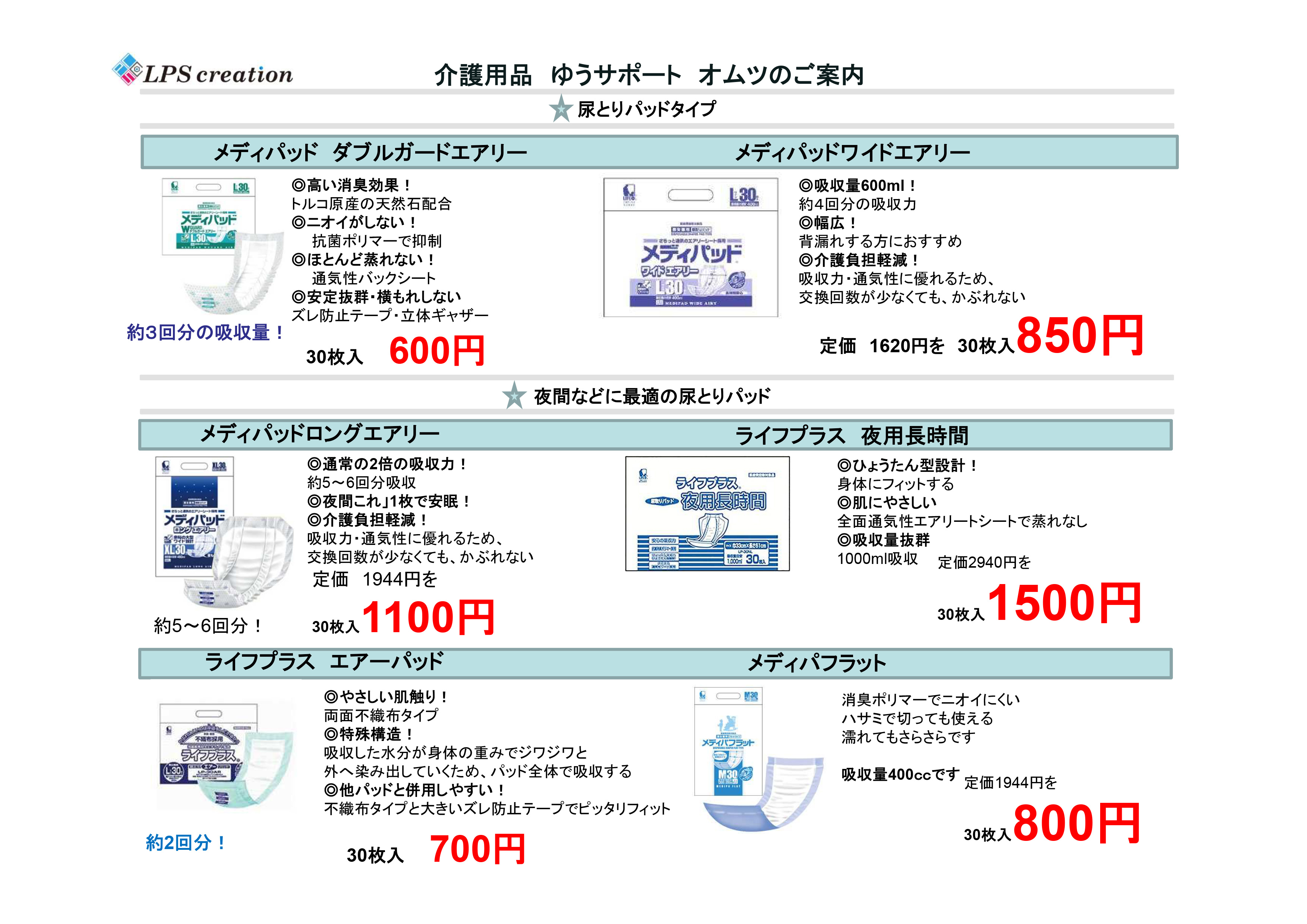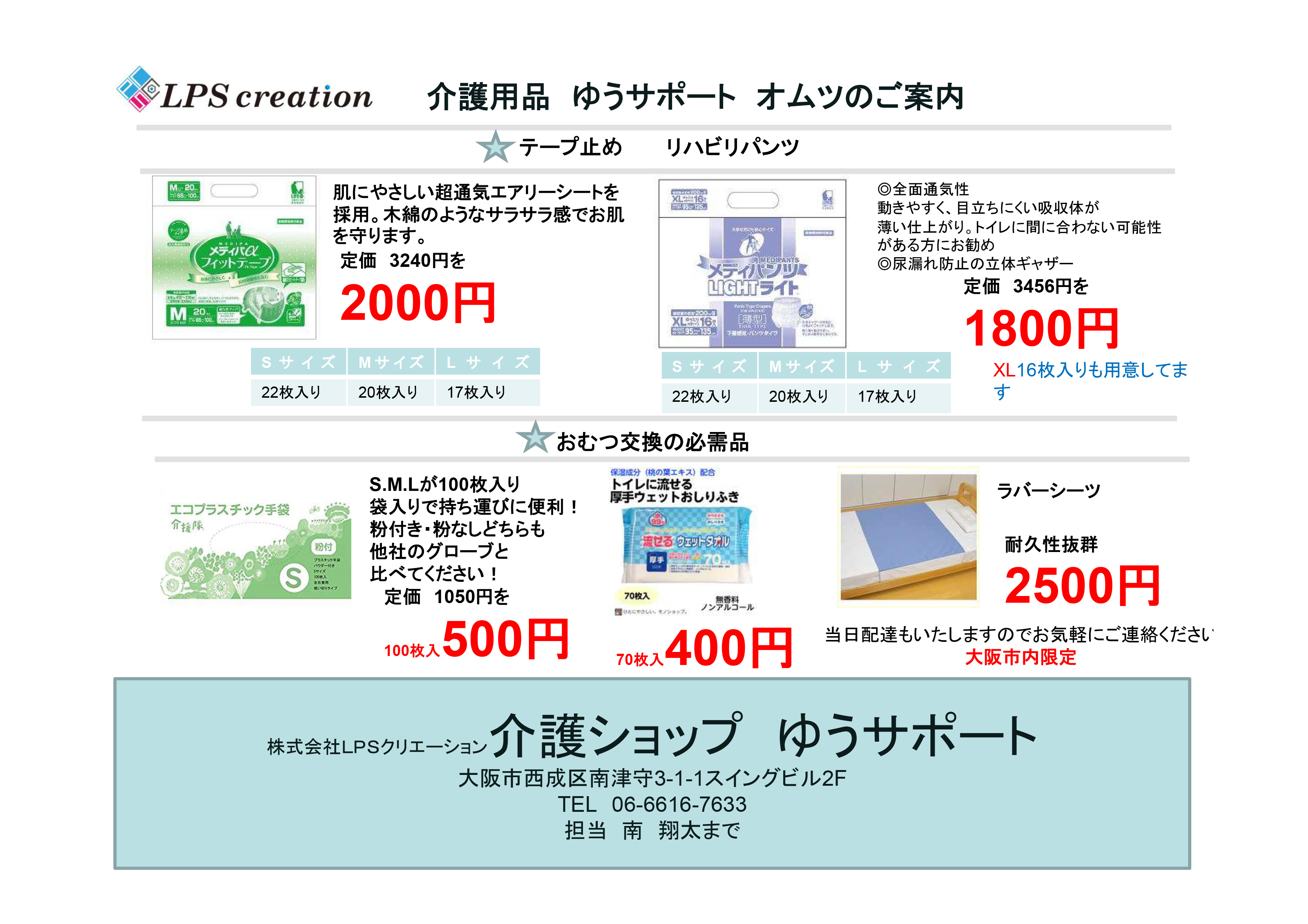 【福祉用具】特価品 介護用オムツ 2018年2月6日 by LPSクリエーション Leave a Comment 毎日の消耗品『オムツ』 積もり積もれば大きな出費に、、、 今回、そんな利用者様からの声にお応えしていくべく「特価商品」のご用意が整いました。 1袋単位でのご購入でも、当日配達も承っております。 メール、電話にてお気軽にご注文ください(^^)/